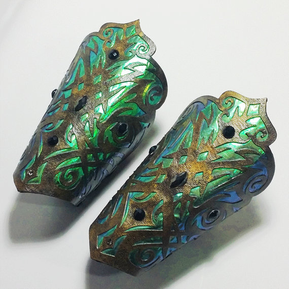 combination of digital die cutting, paper craft and cosplay techniques. The leather base-layered cuffs are beautiful arm guards that are just as appealing to the magic user, fancy dress party goer or anyone wanting to channel their favourite gaming hero.
