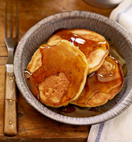 Serve warm. If you like, lightly sprinkle pancakes with powdered sugar. Top with maple syrup and, if you like, toasted walnuts. Makes 10 to 12 standard-size pancakes.