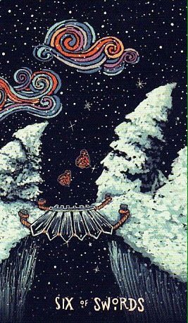 In the video, I speak about this particular deck of cards and the depiction on this one. You can see that safe passage has been provided; it may look a little precarious, but you are makingyour way to the other side of some difficult times. Keep that faith and follow the path the Universe is showing you.