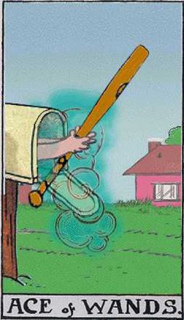 Aces represent gifts from the Universe and the fire of the Wands offers up a creative new beginning. You may be working on a new approach to an old issue, or even a brand new beginningbasically from scratch, which is wonderful. Just as in baseball, it is important to know when to swing; to swing wildly will result in a loss and to not swing at all certainly does not provide an opportunity to win at the game. So, set your sights on your target and wait for the proper moment. Then swing!