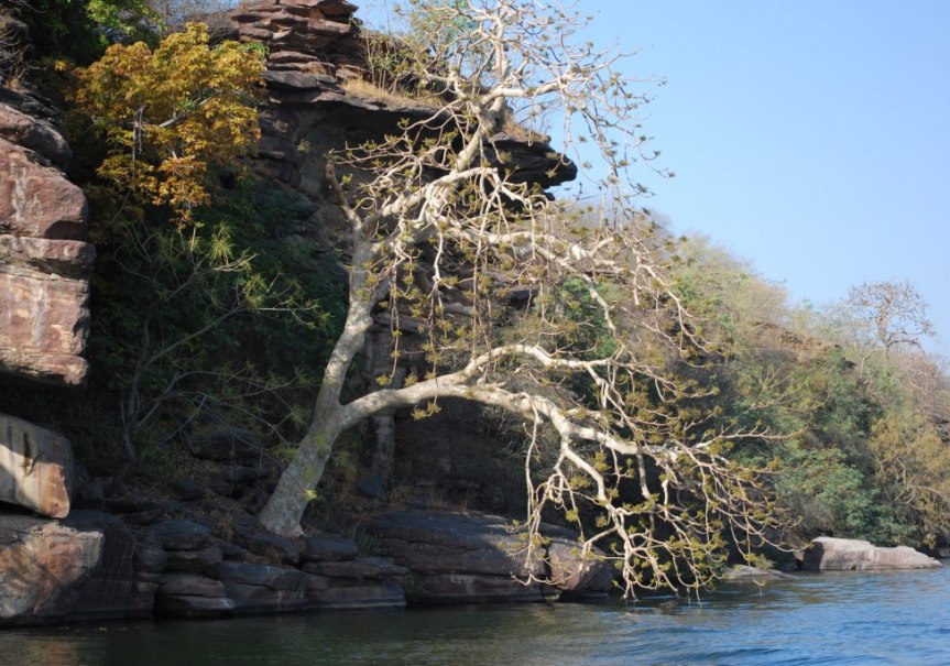 All the leaves have been shed by The Indian Gum Tree revealing the pale White Bark which lends it the name Bhutia or GHOST TREE.