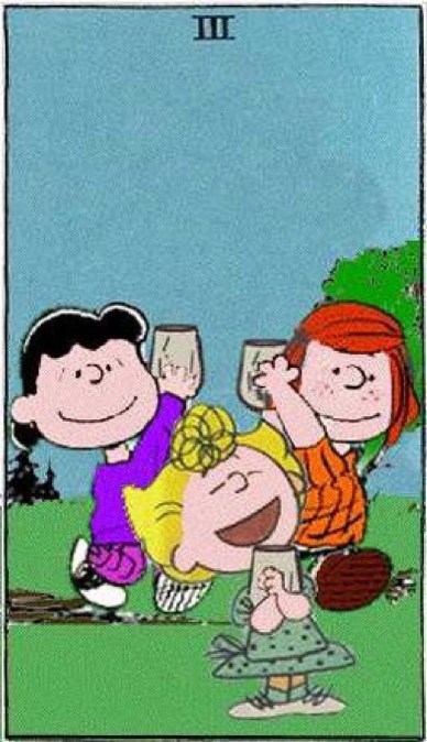 Today we have the gals from the Peanuts gang hanging out together and enjoying each others company. There is a positive feeling to the energy in the air, but, at the same time I do not feel as though it is monumental. Some days you are up and some days you are down. This feels like an up moment, perhaps relishing in the fact that nothing else has gone wrong! There is definitely a little yay! in here somewhere. I say take the positive vibes when you can get them; learn to recognize and appreciate the blessings, no matter how large or how small.