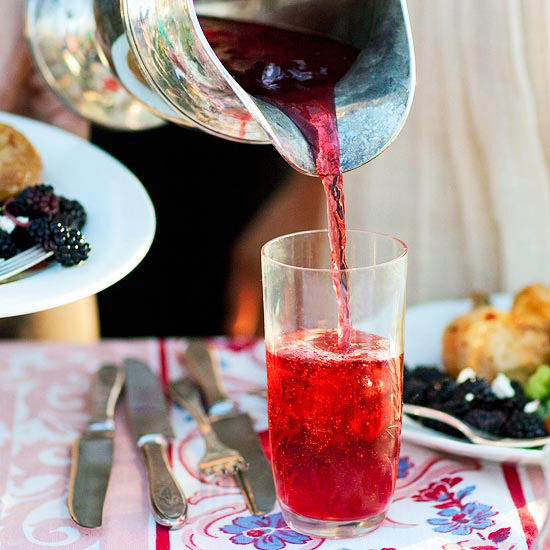 This bright red-purple tea will go fast in the summer sun, so make two pitchers when serving a crowd. Using a vegetable peeler, thinly peel two oranges, being careful not to remove the bitter white pith. Squeeze and set aside juice from oranges. In a very large bowl combine peel, 2 cups dried hibiscus flowers,* 4 cinnamon sticks, and 3/4 cup honey. Stir in 14 cups boiling water. Cool to room temperature (about 2 hours). Strain into a very large pitcher; stir in orange juice. Serve at once over ice or cover and chill up to 24 hours. Makes 12 (8-oz.) servings.