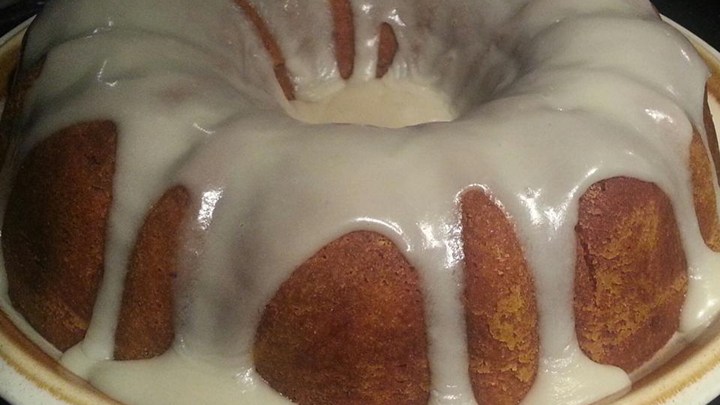 Bake in a 375 degree F oven for 45 minutes or until a wooden toothpick inserted near the center comes out clean. Cool cake in pan on a wire rack for 10 minutes. Remove cake from pan. Cool completely. Spoon Maple Icing over cake and sprinkle top with walnuts. Makes 12 servings.