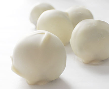 2. Shape mixture into 1-inch balls. Dip balls in melted white chocolate; let excess drip back into pan. Place on the prepared cookie sheet. Decorate as desired with candies. Let stand until white chocolate is set. Store, covered, in the refrigerator.