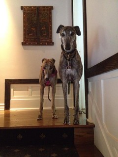 Pets’ Place: Greyhounds Baeley and Wyst Take It Easy