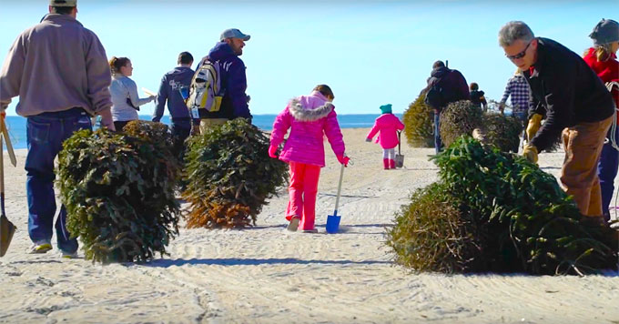 Old Christmas trees being used to rebuild sand dunes along North Carolina coastline