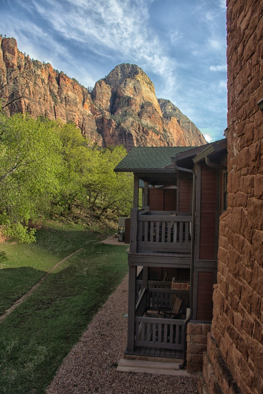 When visiting Zion National Park, we stayed in the Watchman building of Zion Lodge. These were reasonably priced accommodations with a rustic motel vibe and common areas in each building with fireplaces, seating and board games.