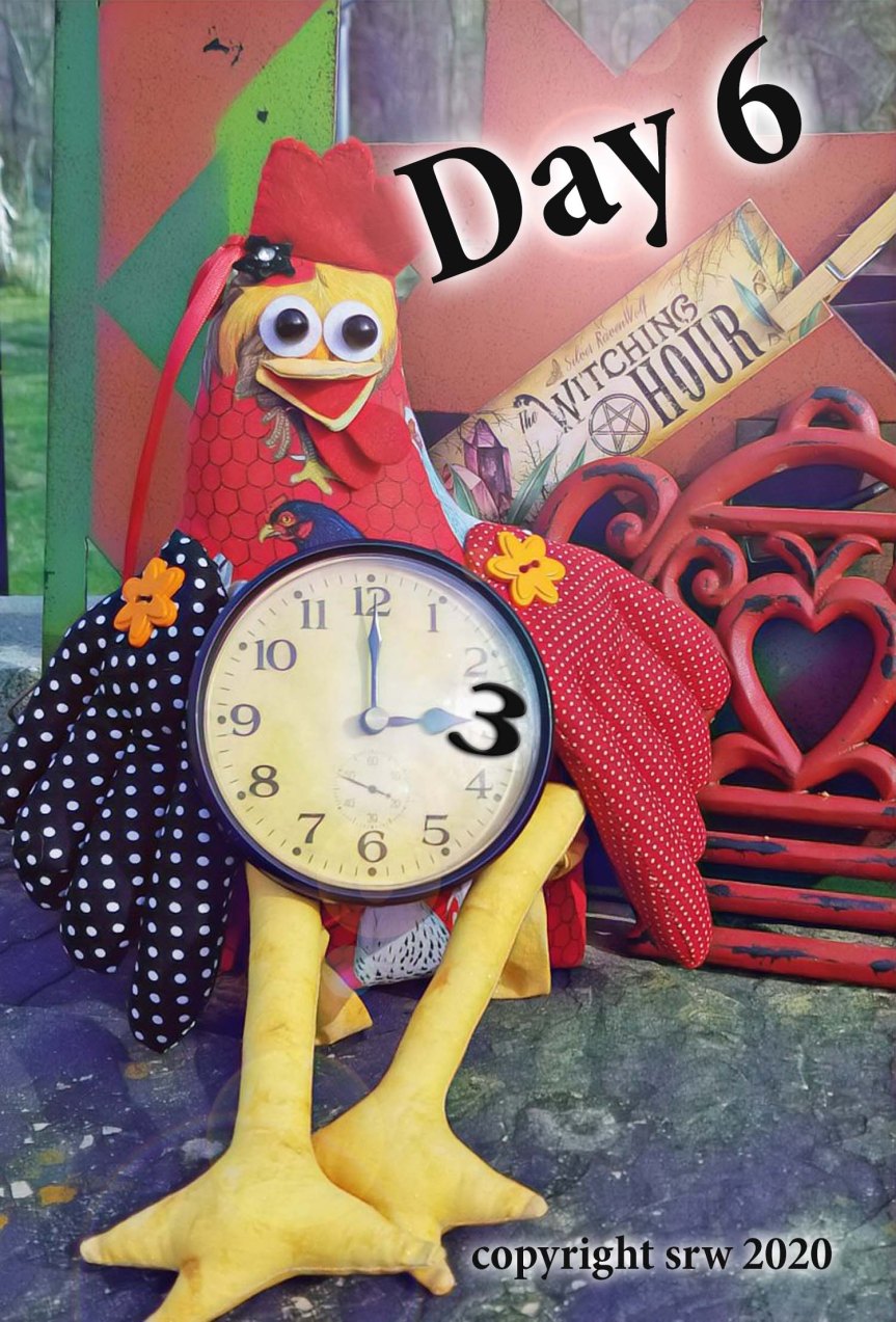 Dawn outside in Ritual Circle – Louisa Lolly poses for today’s publicity pic! A chicken’s gotta do what a chicken’s gotta do!