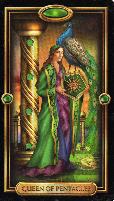 The Queen of Pentacles indicates a need to seek practical tangible solutions today. Come up with a strategy, a practical plan that you and your family or co-workers can implement effectively. your solutions may come in intuitive flashes of inspiration. Today almost everyone you interact with seems to be seeking some kind of guidance from you. You use your abilities to create practical solutions to empower your self and others today. Don’t forget to nurture yourself and those you love, make time for this no matter how busy you are.