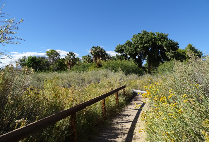 The preserve is a riparian wilderness with Palm Trees, Cottonwood Trees and Willows, as well as a variety of native shrubs and flowers.